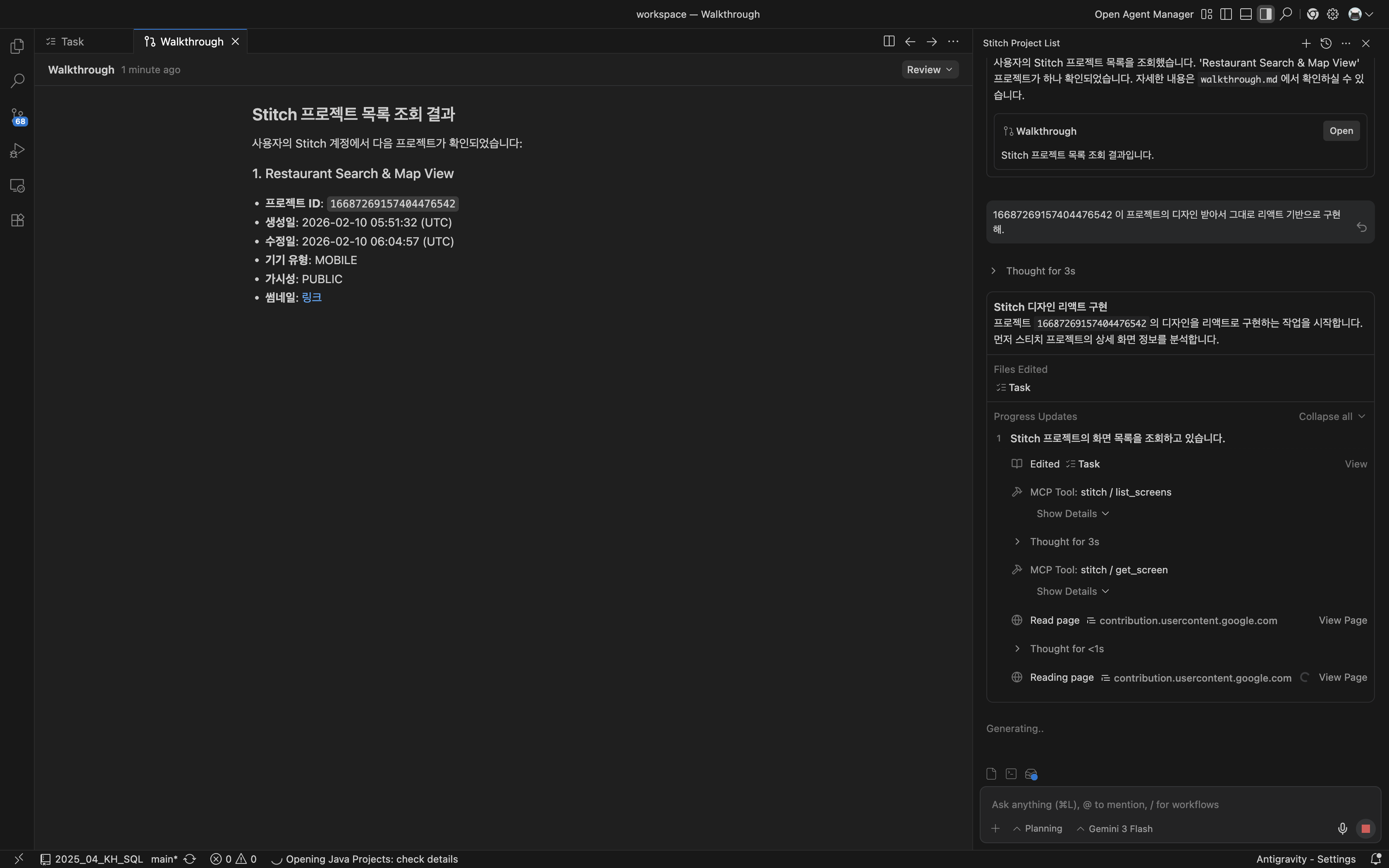 연결이 잘되었는지 Manage MCPs 보시면 Stitch가 있는지 보시면 됩니다.